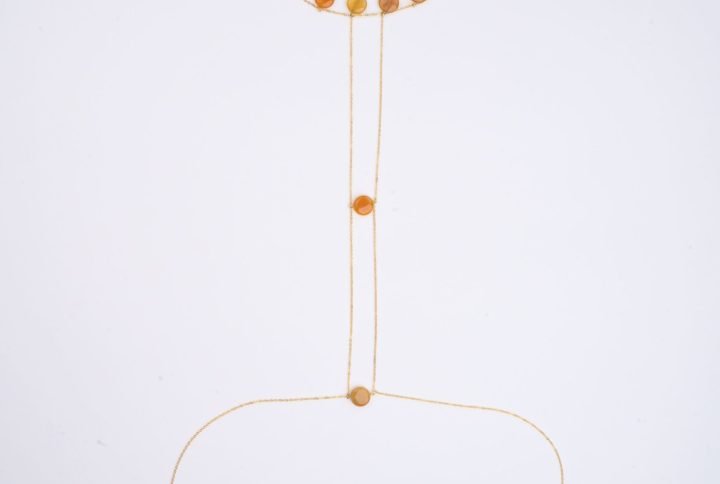 Handcrafted in brass and gold plated, Body Spine is adorned with amethyst stones that follow the natural line of the body.