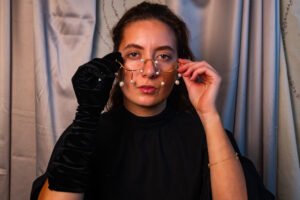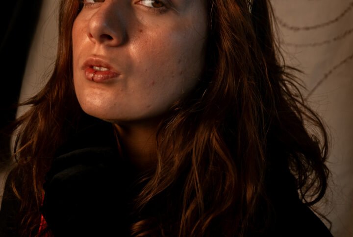 The red line runs through as a pulse of truth, bridging shadow and light.