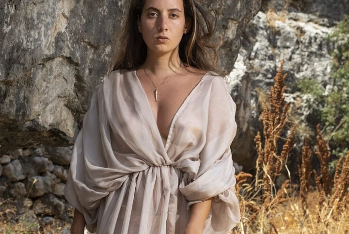 Its square shape frames the body with subtle strength, a study in warmth and form.